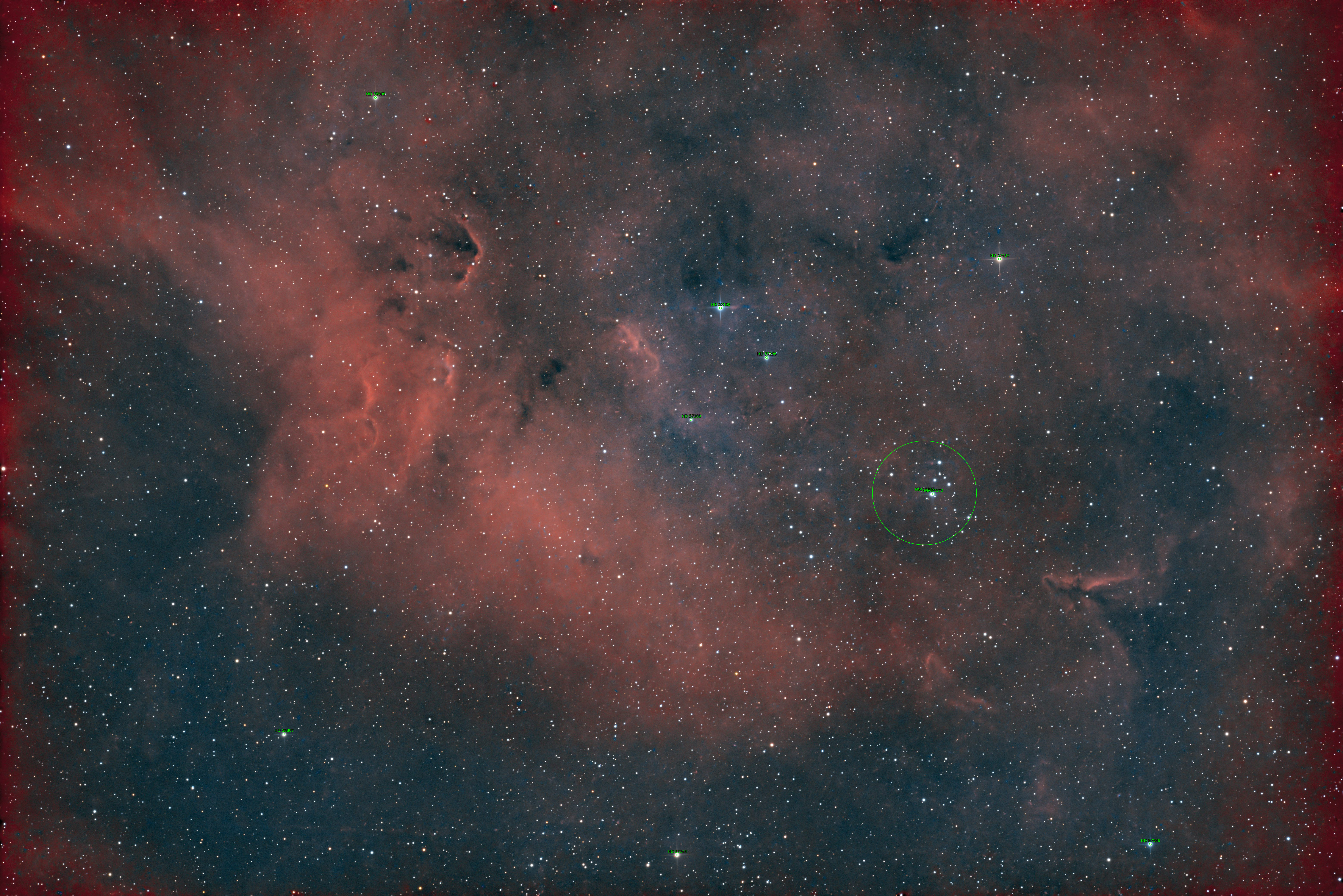 RCW 14 is part of the GS234-02 supershell in the constellation Canis Major. The main ionising star is the O8 V star HD 57236. Includes star cluster NGC 2367. Processed in Foraxx. Size: 69.7 x 46.5 arcmin, Pixel scale: 0.671 arcsec/pixel