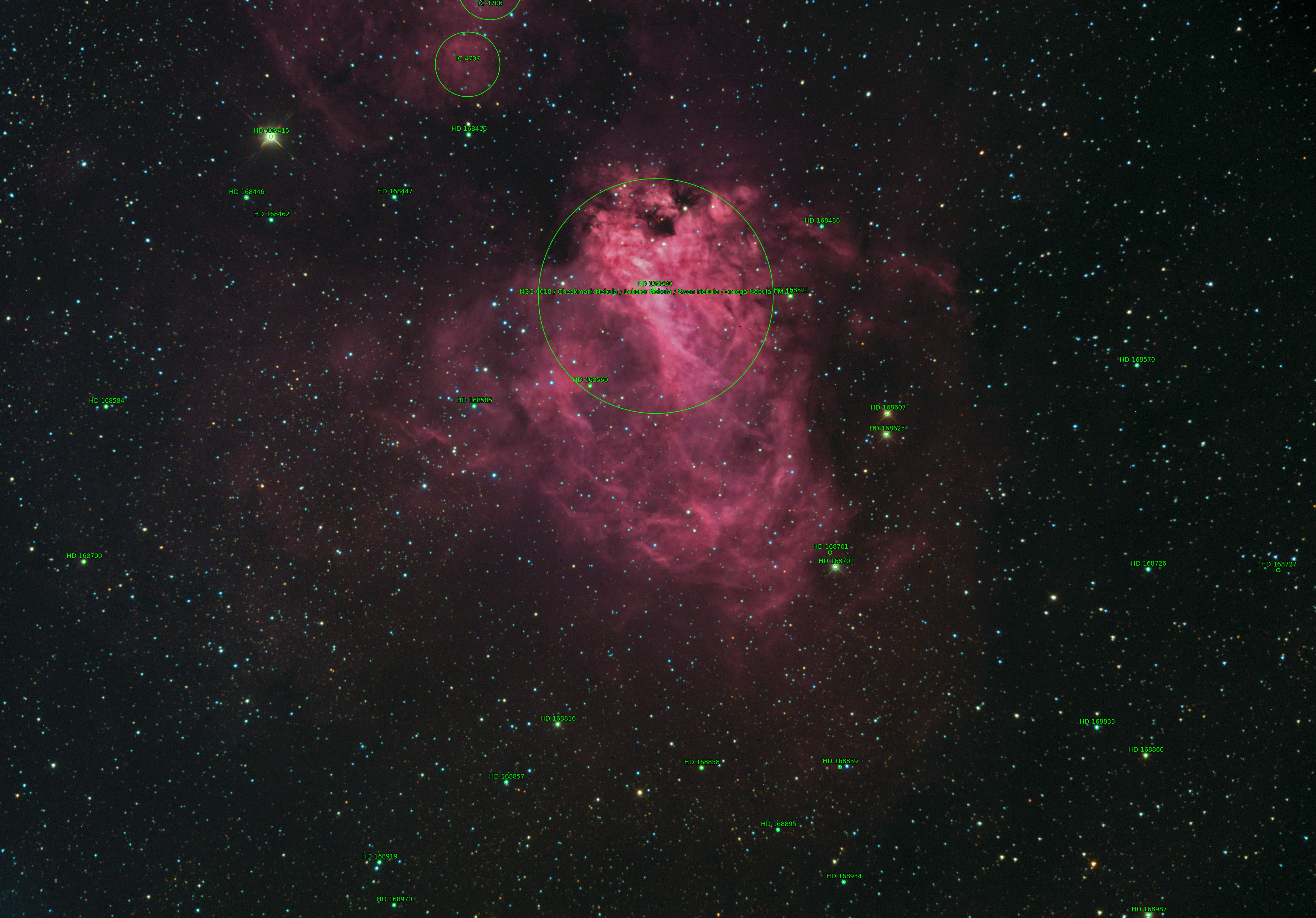NGC6618 Messier 17 or the Omega Nebula is an H II region in the constellation Sagittarius about 5,000-6,000 light-years from Earth.