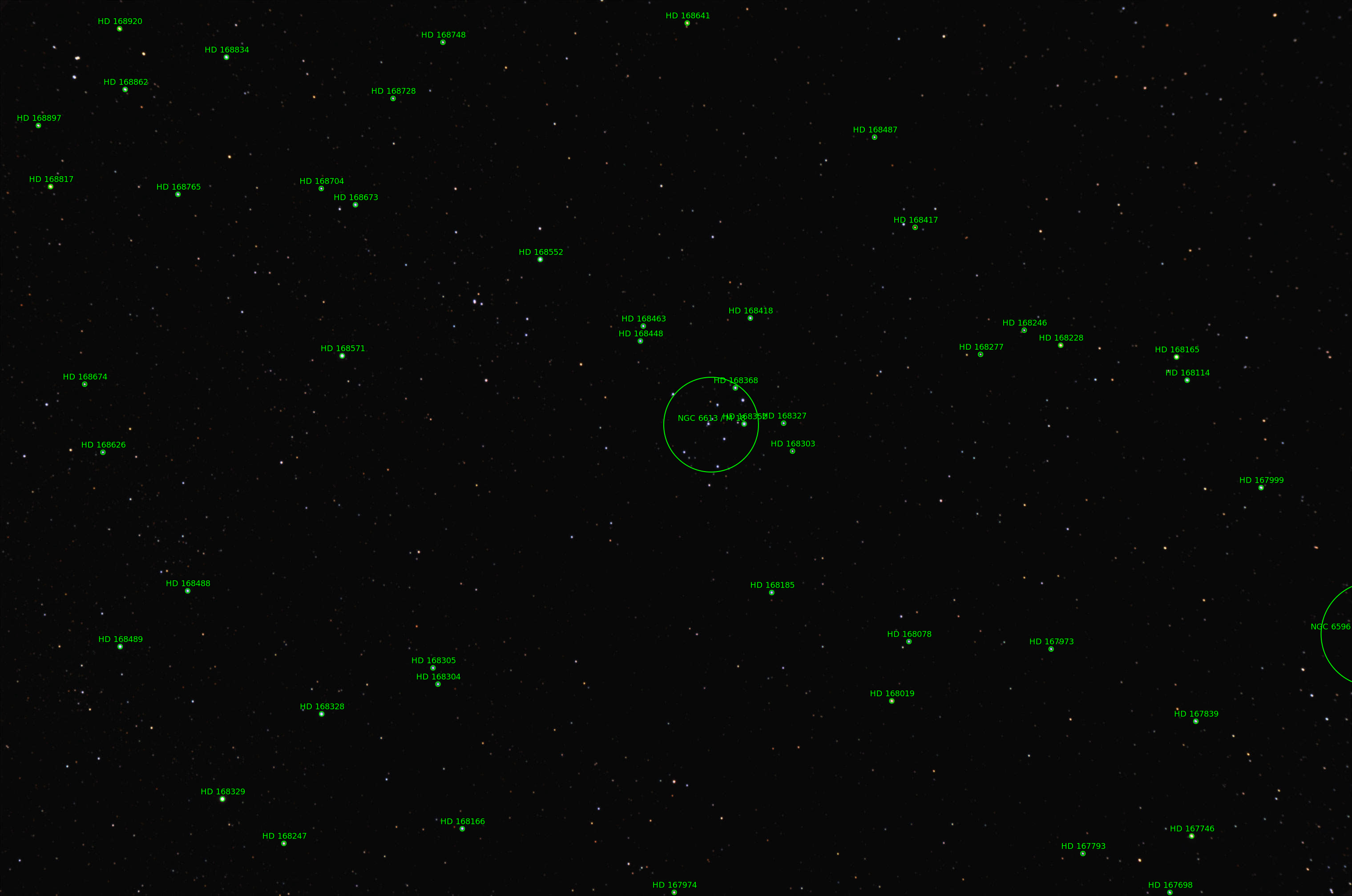 M18 is an open cluster of stars in the constellation Sagittarius. Image taken in windy conditions with a bright moon (75.3%).