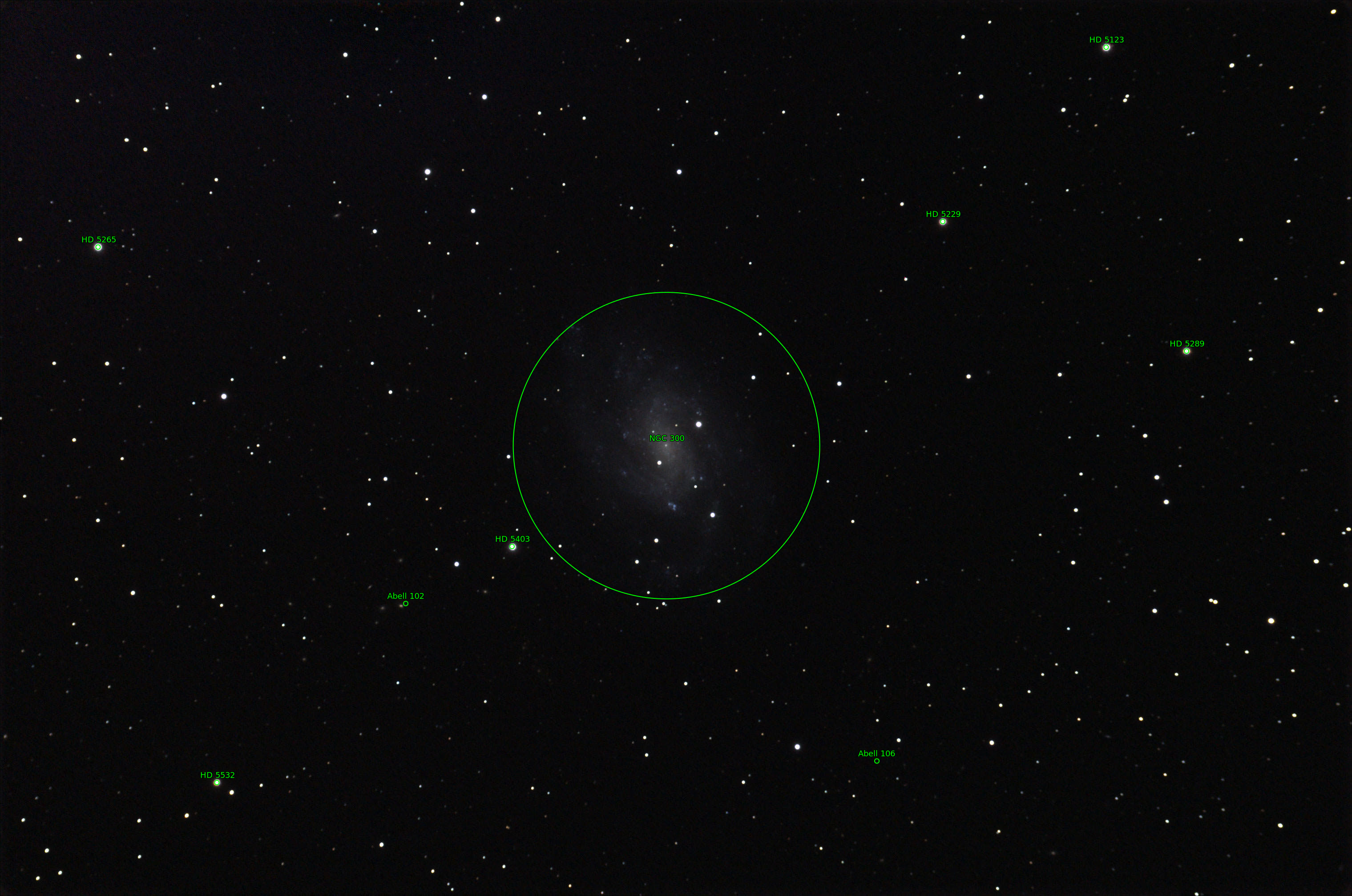 NGC 300 is a bright spiral galaxy in the constellation Sculptor. It is located about 6 million light years from Earth. This image was taken during my first visit to Heathcote. Conditions were good with no wind, moon or clouds to contend with. Although this was my primary target for the night, I ended up not using the RC as I had initially planned, and therefore the image has suffered a from a lack of detail.