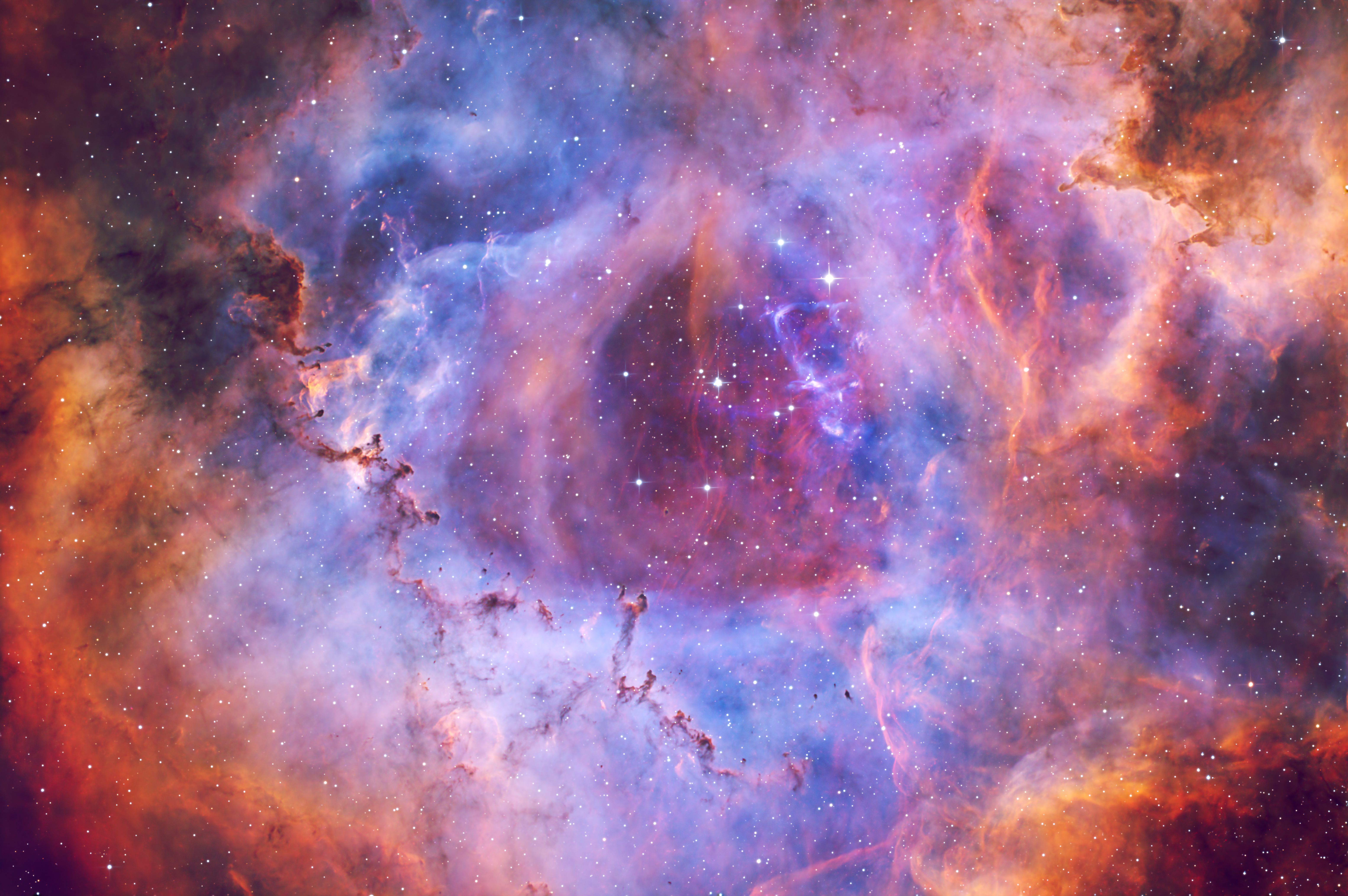 The Rosette Nebula is a large, circular H II region. Distance is 5,200 light years. Also includes NGC 2237, NGC 2246, NGC 2238, Sh2-275, NGC 2239, LBN 948, LBN 949.